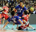런던올림픽 아시아예선 결승전 대한민국과 일본의 경기가 2일 방이동 SK 올림픽핸드볼경기장에서 펼쳐졌다. 박중규가 토요다에거 걸려 넘어지며 슛팅을 시도하고 있다.전준엽 기자 noodle@sportschosun.com/2011.11.02